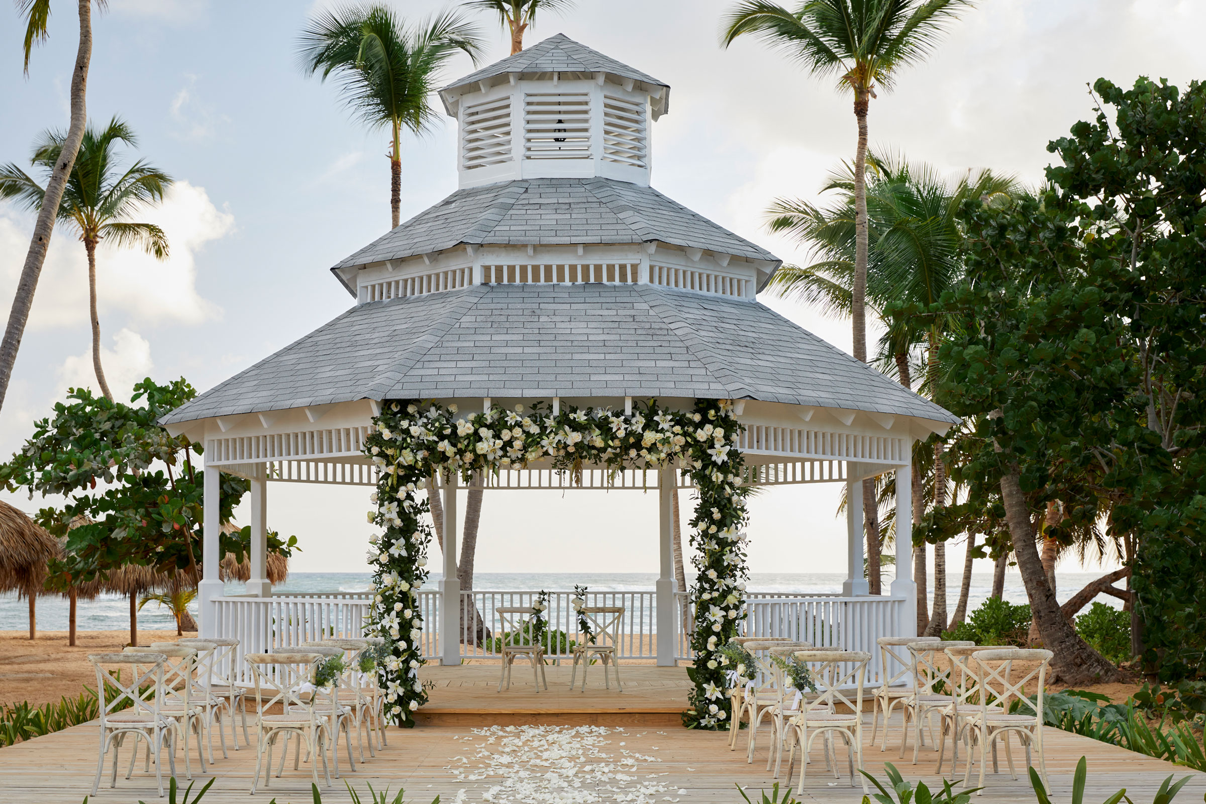 Finest Punta Cana grand gazebo wedding venue with floral arrangements